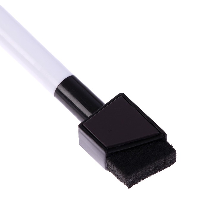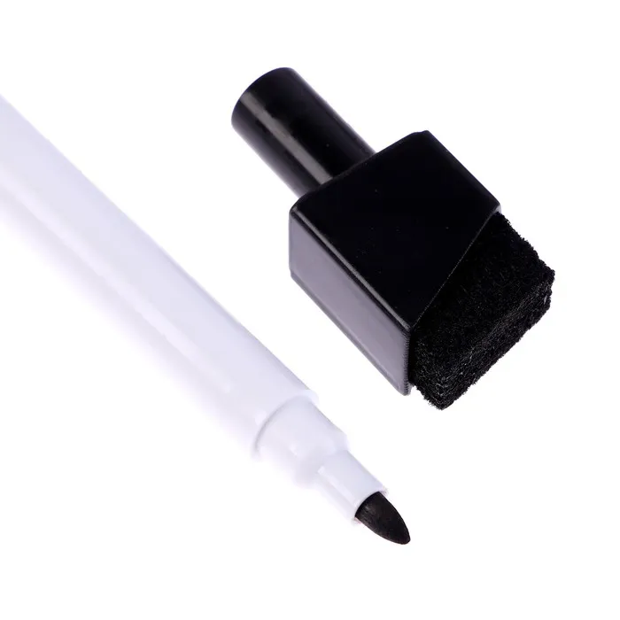 - На колпачке маркера есть войлочная губка и магнит. С помощью губки можно стирать надписи на доске, а с помощью магнита маркер можно хранить, прикрепив его к магнитной доске.