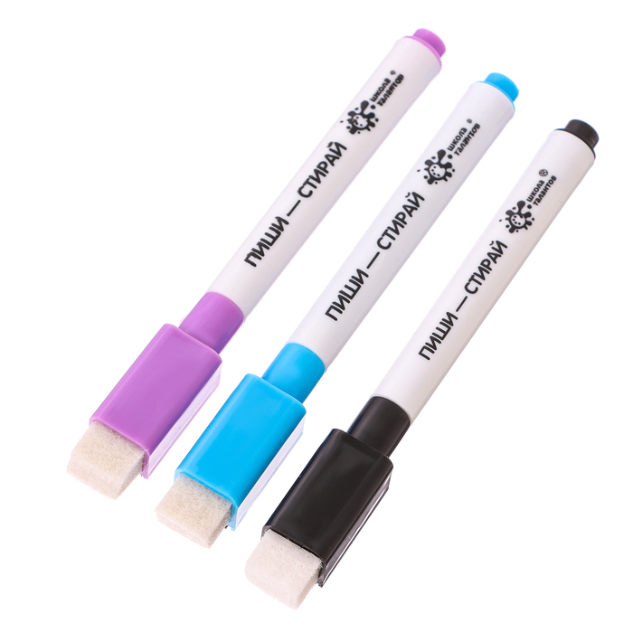 Маркеры цветные «Пиши — Стирай», на водной основе, с магнитом и губкой, набор 3 шт.