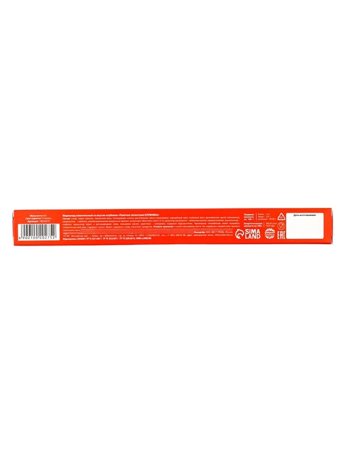 Состав: сахар, сироп глюкозы, пшеничная мука, глазирующие агенты: растительное масло (пальмовое), карнаубский воск, пчелиный воск; растительное масло (пальмовое); увлажнитель – сорбитол, модифицированный кукурузный крахмал, концентрат яблочного сока 1,5 %, регулятор кислотности – лимонная кислота, говяжий желатин, ароматизатор – клубника, эмульгатор (моно- и диглицеридные жиры, пальмовое масло), красители – антоцианы.