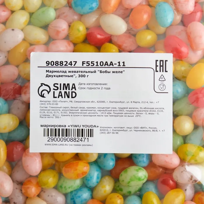 Подарите себе и своим близким радость с жевательным мармеладом «Бобы желе Двухцветные» — это замечательное сладкое угощение, которое добавит яркие цвета и вкус в вашу жизнь!