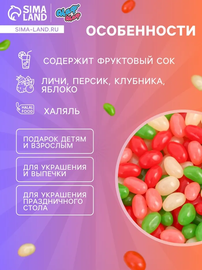 Мармелад жевательный «Бобы желе» со вкусом личи, персик, клубника, яблоко, 1 кг — Характеристики