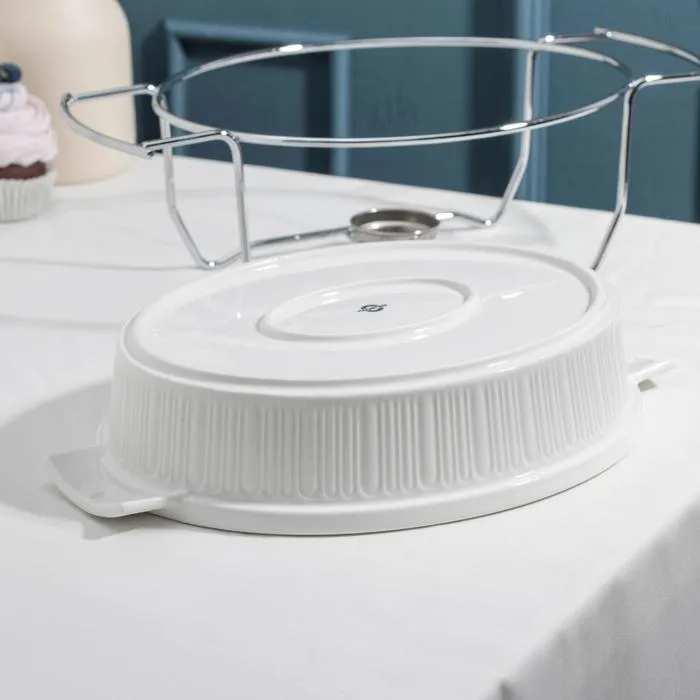 Настольный мармит с подогревом от свечи изготовлен из керамики, которая отличается механической прочностью и высокой степенью стойкости к термическим нагрузкам.