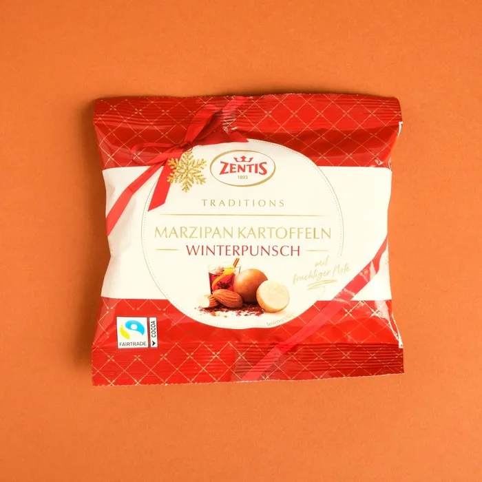 Марципановая картошка Zentis со вкусом зимнего пунша- европейское лакомство, приготовленное из отборного, перетертого в муку калифорнийского миндаля. Небольшие сахарно-миндальные шарики, слегка припудренные какао-порошком, обладают оригинальным вкусом рома и необыкновенной, тающей во рту текстурой. Марципановые конфеты непременно порадуют гурманов и станут украшением любого чаепития.