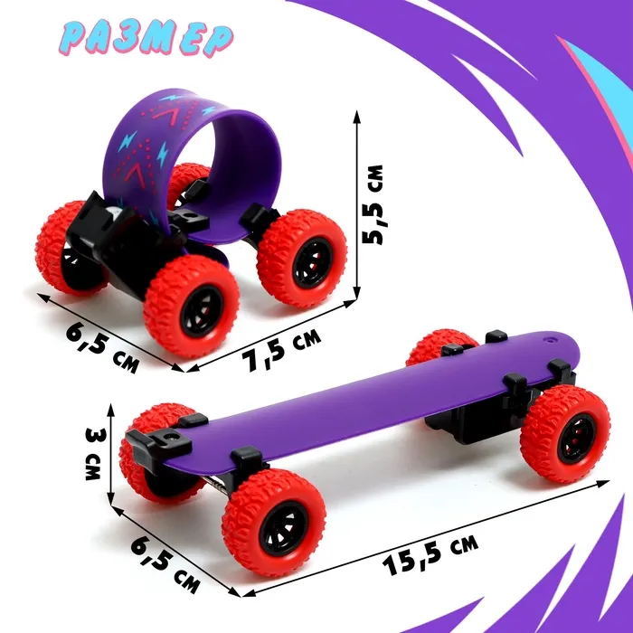 Машинка «Браслет» — это уникальная игрушка для детей от 3 лет, которая совмещает в себе функции автомобиля и браслета. Машинка выполнена из гибкого пластика, который позволяет трансформировать её из компактного браслета в полноценную инерционную машинку. Благодаря этому ребёнок может носить её на запястье и играть где угодно.