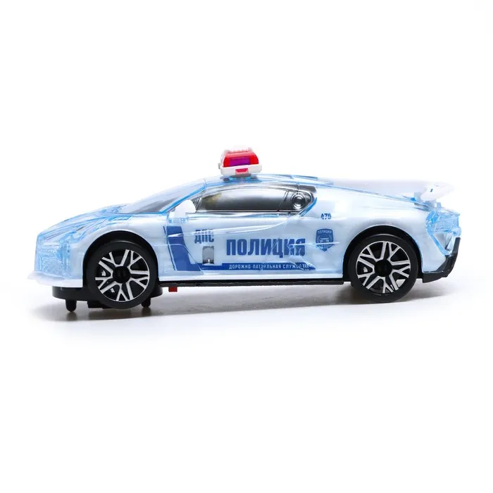 Машина «Crazy race. Полиция», инерционная, световые и звуковые эффекты, русская озвучка, работает от батареек, цвет белый — Характеристики