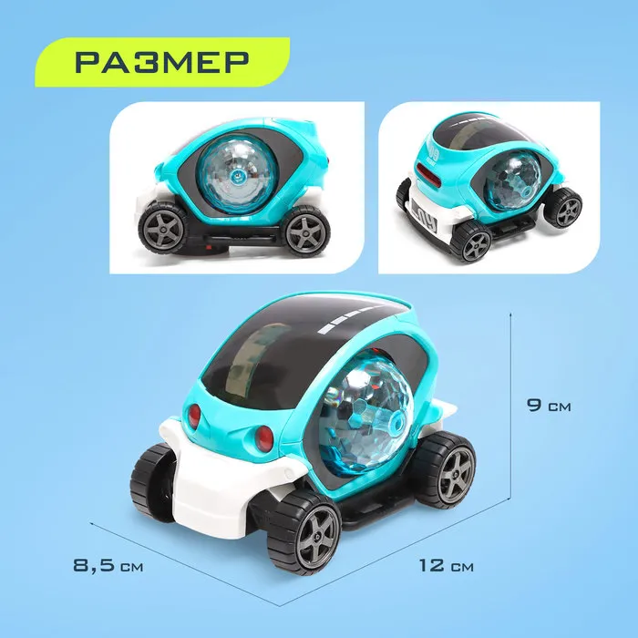 Машина «Диско», диско-шар, световые и звуковые эффекты, работает от батареек, цвет бирюзовый — Характеристики