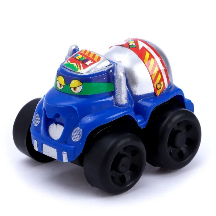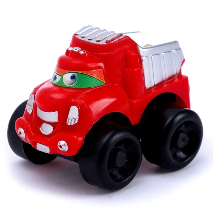 - Инерционный механизм приводит машину в движение без батареек – достаточно просто закрутить колёса.