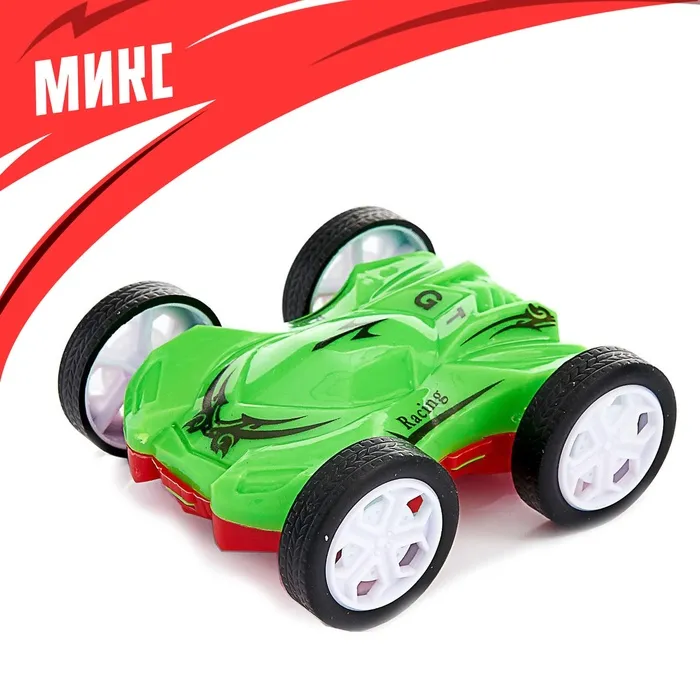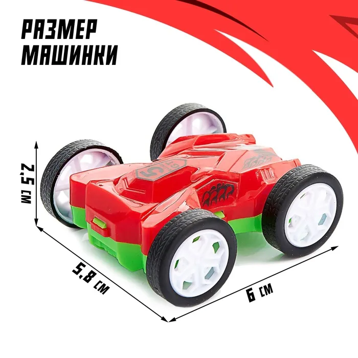 Яркая и стильная машинка «Перевёртыш» станет любимцем вашего ребёнка. Автомобиль подойдёт в качестве приятного мини-сюрприза малышу или памятного подарка от именинника друзьям. Машинка с инерционным механизмом — её нужно всего лишь отвести назад, опустить, и она поедет. А если машинка ударится об препятствие и перевернётся, то поедет дальше.