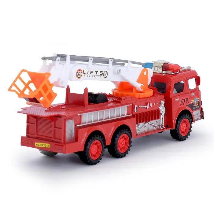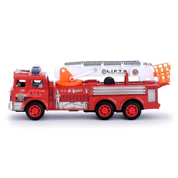 Автомобиль спецслужбы с первых секунд привлечёт внимание будущего пожарного. Крохе понравится, что у техники выдвигается и вращается лестница, изменяется угол наклона люльки.