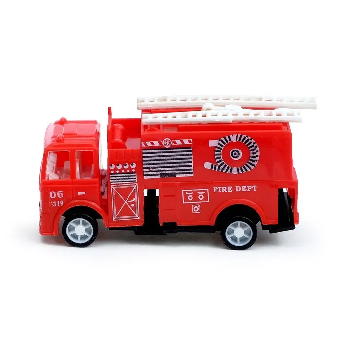 - Яркий дизайн спецтехники: узнаваемые формы пожарной машины с деталями кузова. Разные цвета в ассортименте — каждый найдёт свой любимый вариант.