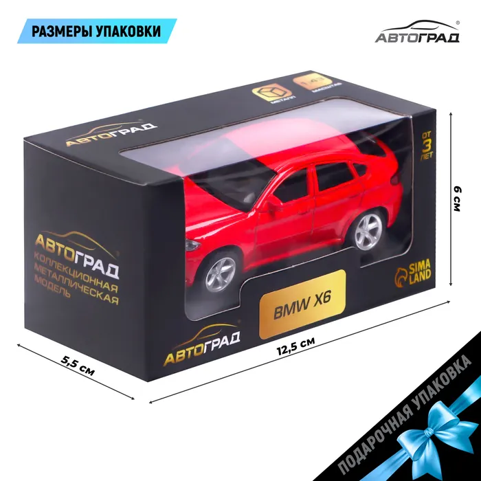 Машина металлическая BMW X6, 1:43, цвет красный — Характеристики