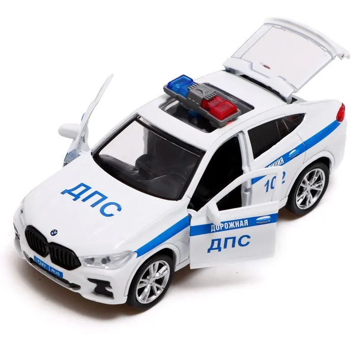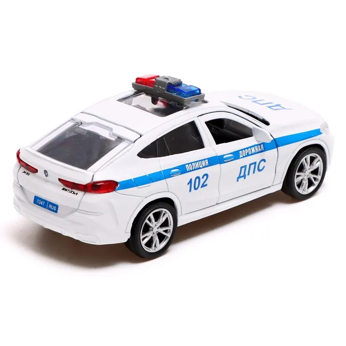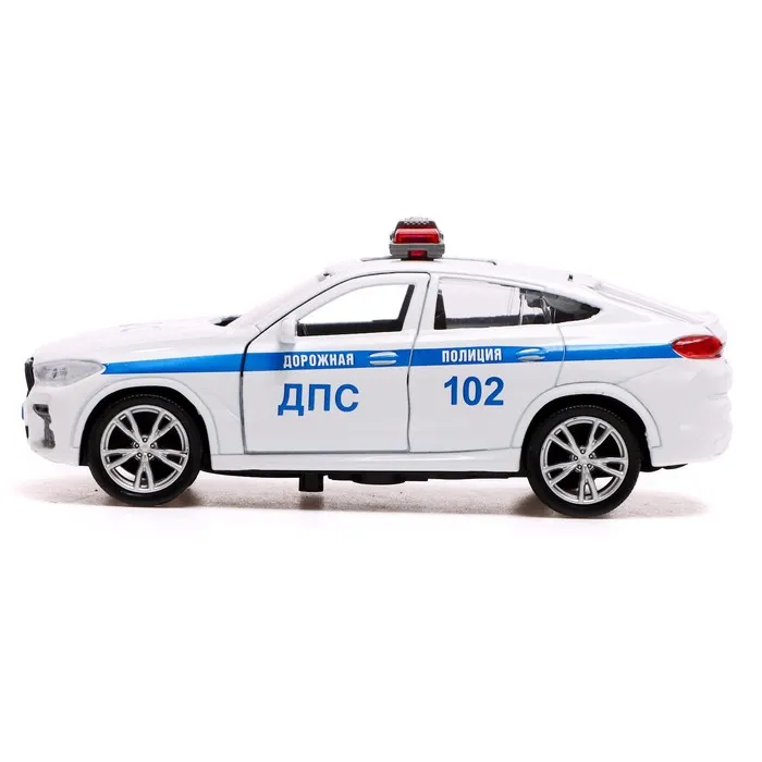 Машина металлическая «BMW X6 полиция», 12 см, открываются двери и багажник, инерция, цвет белый — Характеристики