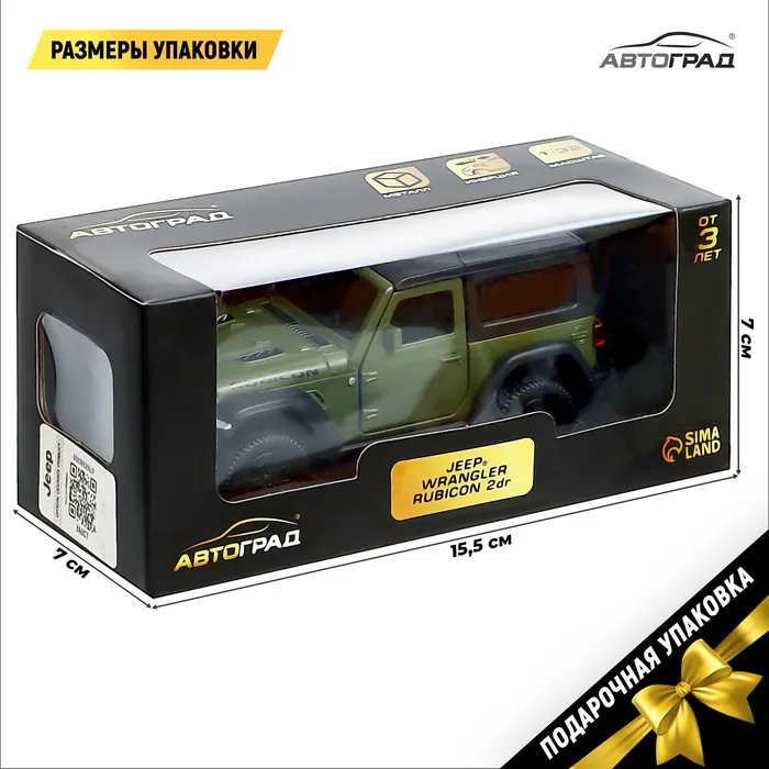 Машина металлическая JEEP WRANGLER, 1:32, инерция, цвет матовый зелёный — Характеристики