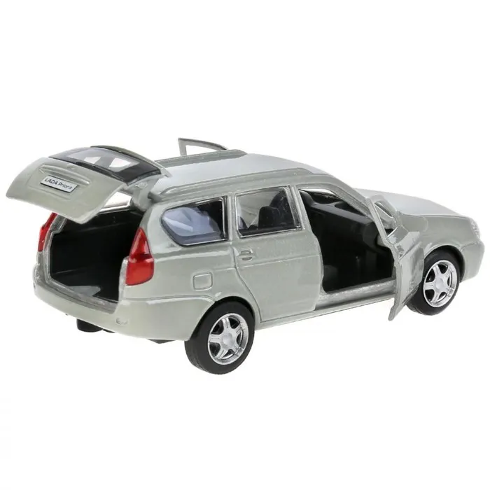 Металлическая модель автомобиля LADA Priora станет отличным подарком для ребёнка или коллекционера. Игрушка повторяет внешний вид оригинального авто и оснащена инерционным механизмом, благодаря которому машинка разгоняется вперёд при лёгком толчке. Двери и багажник открываются, что добавляет игре реалистичности.