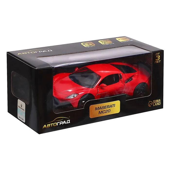 Машина металлическая MASERATI MC20, 1:32, открываются двери, инерция, цвет красный
