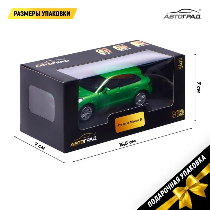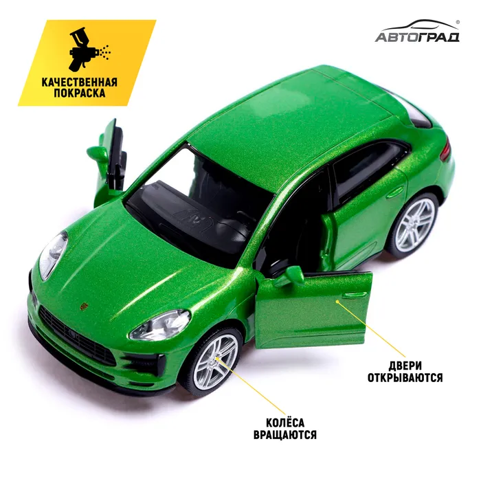 Машина металлическая PORSCHE MACAN S, 1:32, открываются двери, инерция, цвет зелёный — Характеристики