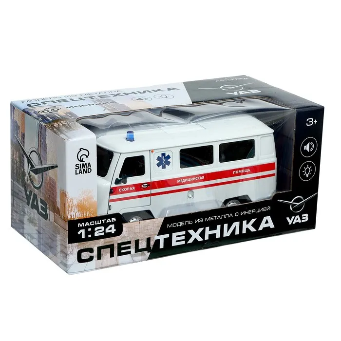 Машина металлическая «УАЗ 3962. Скорая помощь», инерция, 1:24, свет и звук — Характеристики