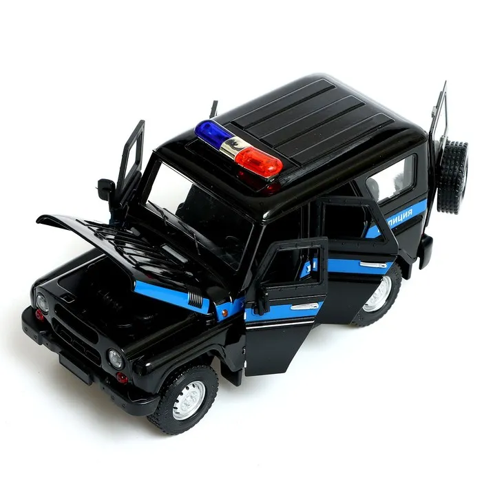 Машина металлическая «УАЗ Hunter. Полиция», инерционная, 1:24, световые и звуковые эффекты, цвет чёрный — Характеристики