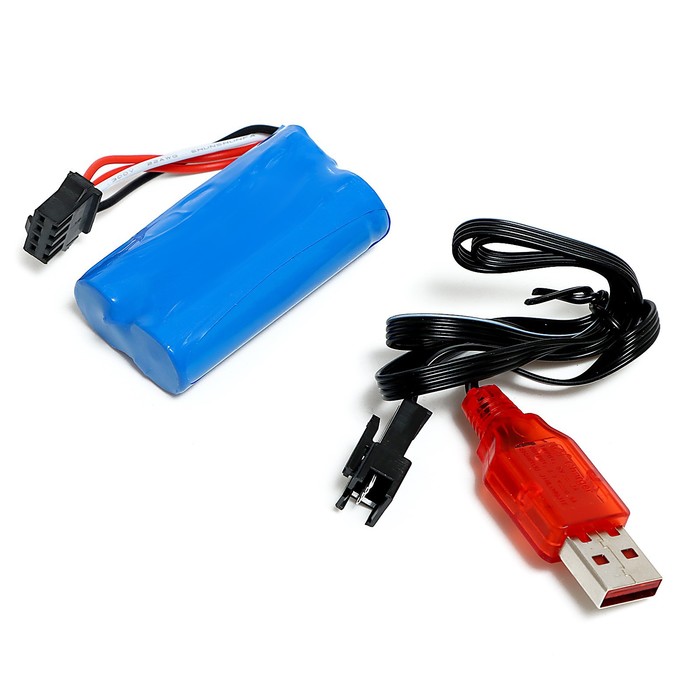 - Ёмкий аккумулятор 7.4V 500 mAh: заряда хватает на 20 минут активной езды со скоростью до 10 км/ч. Для зарядки используется USB-кабель (входит в комплект).
