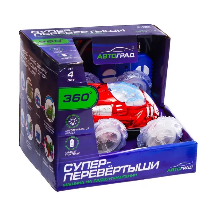 Машина-перевёртыш радиоуправляемая «Трюк», работает от батареек, световые эффекты, цвет красный