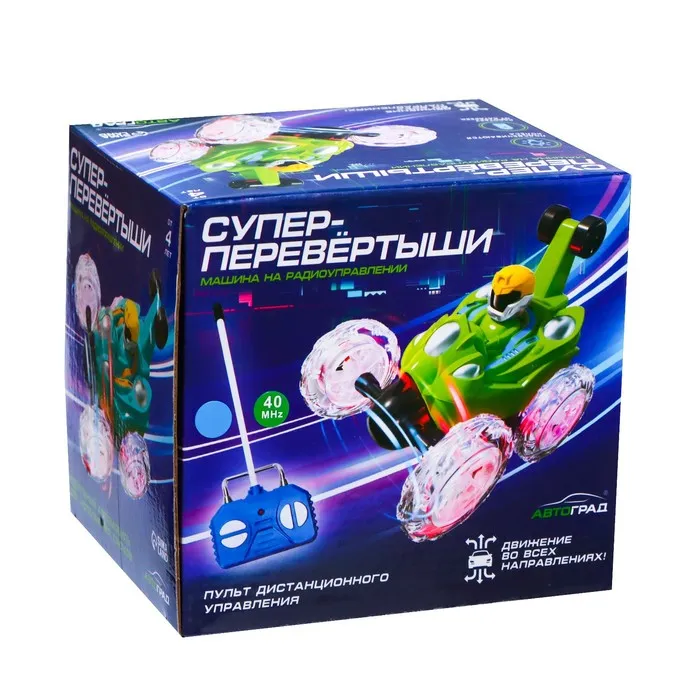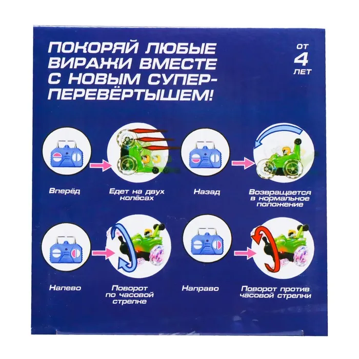 Машина-перевёртыш радиоуправляемая «Трюк», работает от батареек, световые эффекты, цвет синий — Характеристики