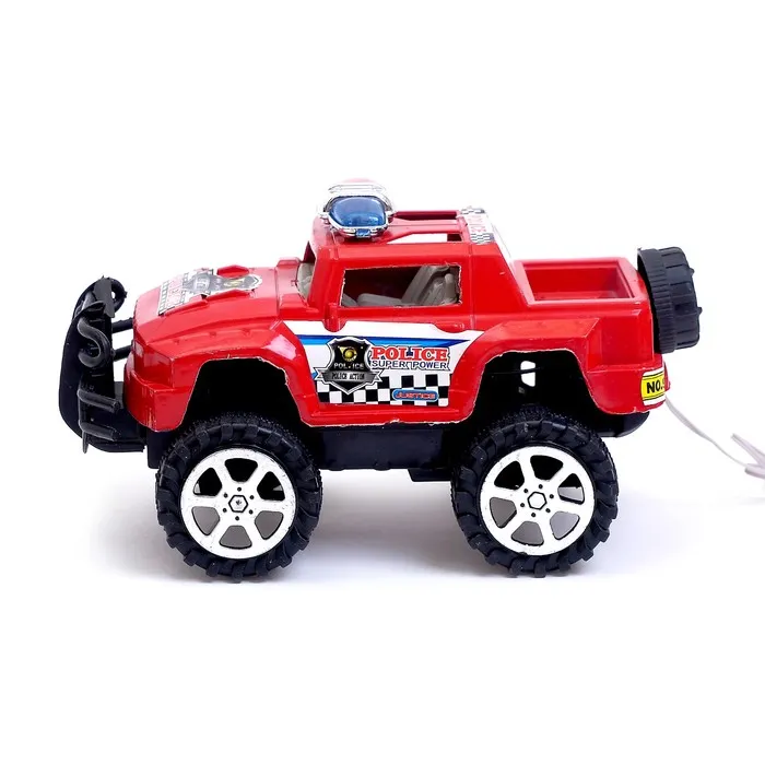 - Крепкий внедорожник: машина выполнена в виде мощного джипа, который выглядит так, будто готов к любым приключениям. Прочный пластик делает её устойчивой к повседневным нагрузкам, а красный цвет добавляет яркости и заметности.