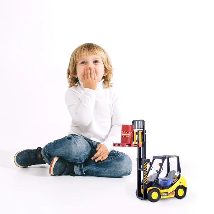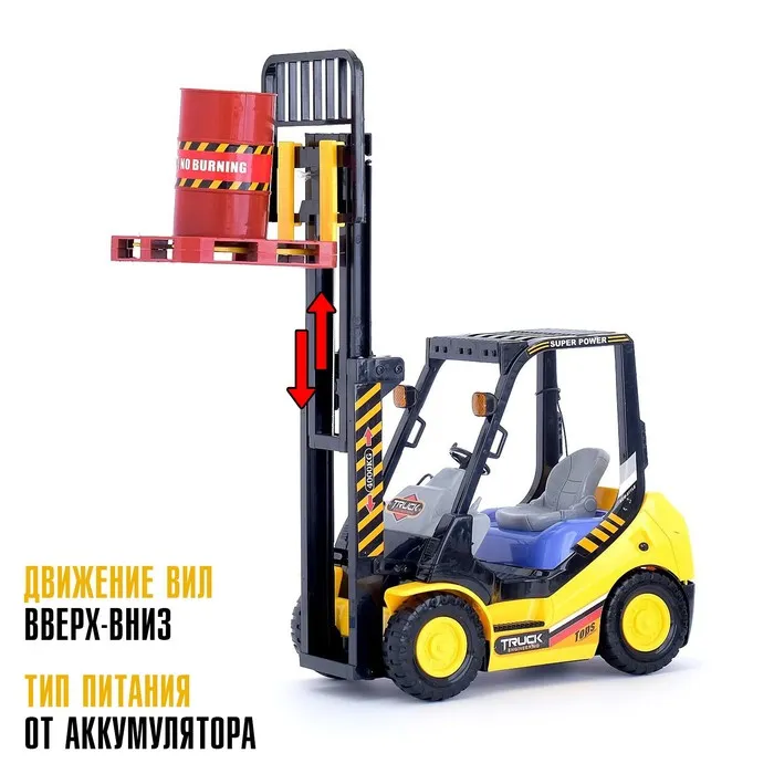 Радиоуправляемый погрузчик станет незаменимой техникой в гараже каждого юного строителя. Он оборудован вилами для транспортировки крупногабаритных и тяжёлых грузов.