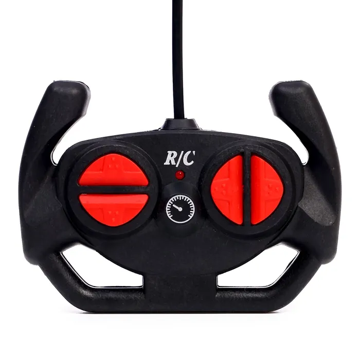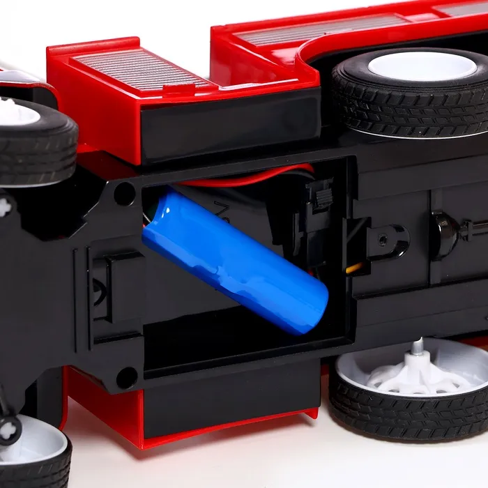 - Радиоуправляемая машинка работает от аккумулятора. Пульт — от батареек типоразмера АА (не входят в комплект).