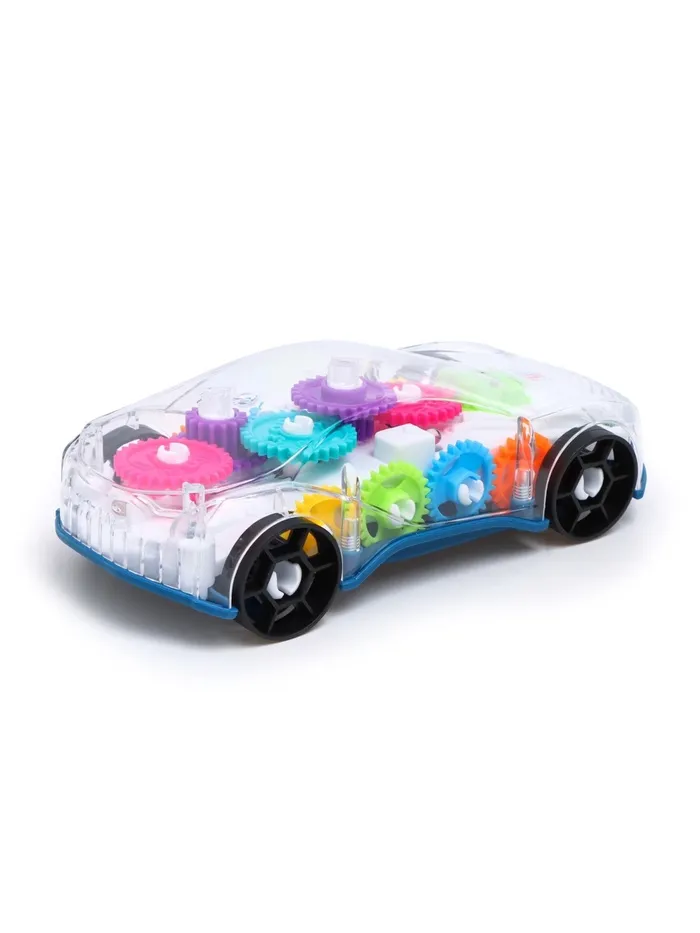 - Движущиеся шестерёнки: прозрачный корпус позволяет наблюдать за вращением цветных шестерёнок во время движения машинки.