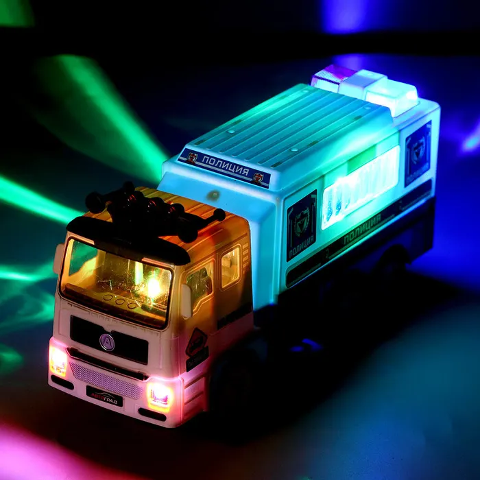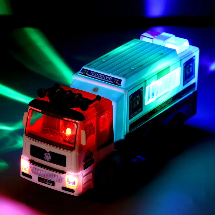 - Световые эффекты: горят лампочки на кабине машины и на кузове.