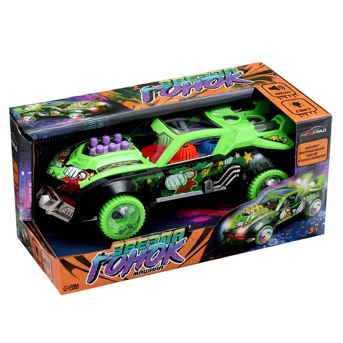 Машина «Звезда гонок», световые и звуковые эффекты, работает от батареек, цвет зелёный — Характеристики