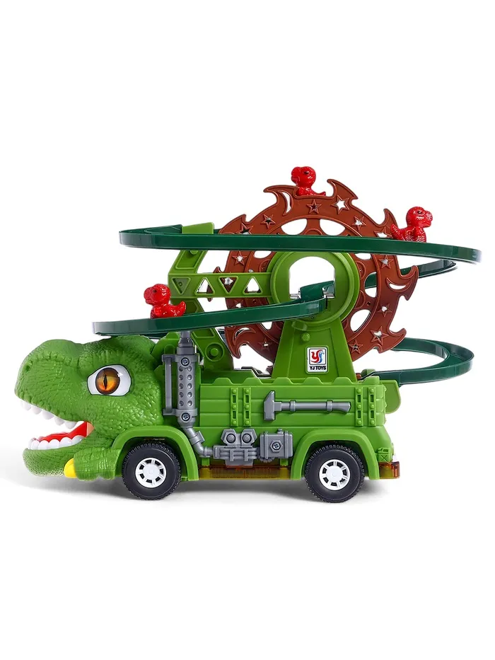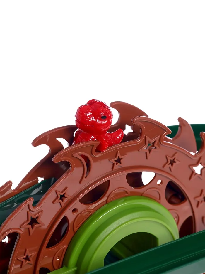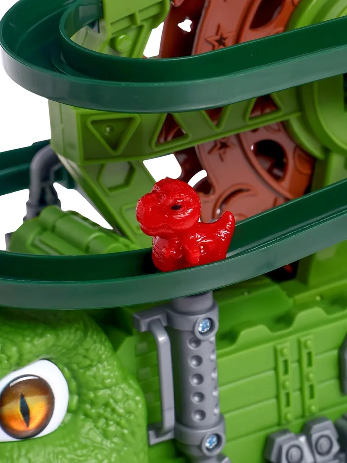 - Динозаврики сами мчатся по трассе — запустите машинку, и она без остановки будет скатываться и подниматься обратно.