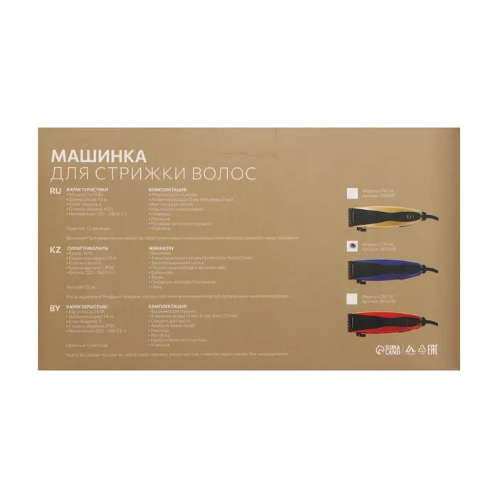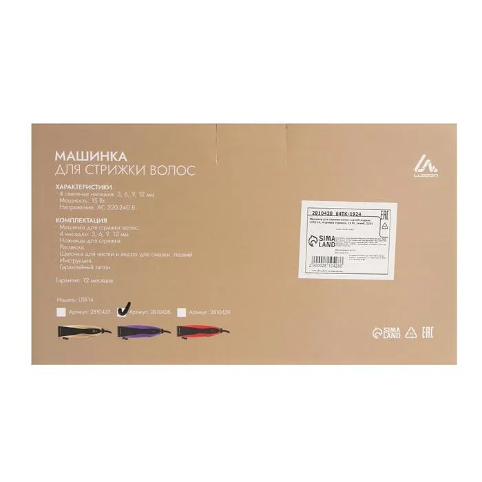 Машинка для стрижки Luazon LTRI-14, 15 Вт, 3/6/9/12 мм, 220 В, синяя — Характеристики