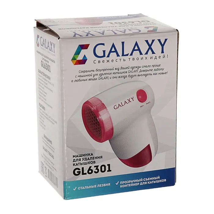 Машинка для удаления катышков Galaxy GL 6301, 2хАА (не в комплекте), бело-розовая — Характеристики