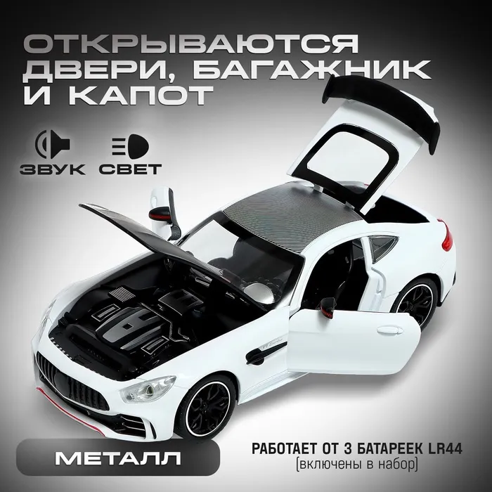 Машинка металлическая, 1:24, инерционная, открываются двери, капот, багажник, цвет белый