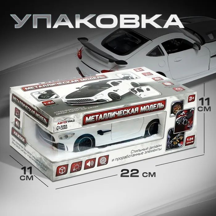 Машинка металлическая, 1:24, инерционная, открываются двери, капот, багажник, цвет белый — Характеристики