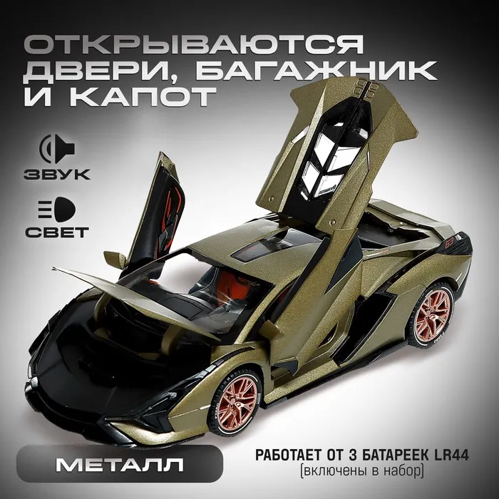 Машинка металлическая, 1:24, инерционная, открываются двери, капот, багажник, цвет хаки — Характеристики