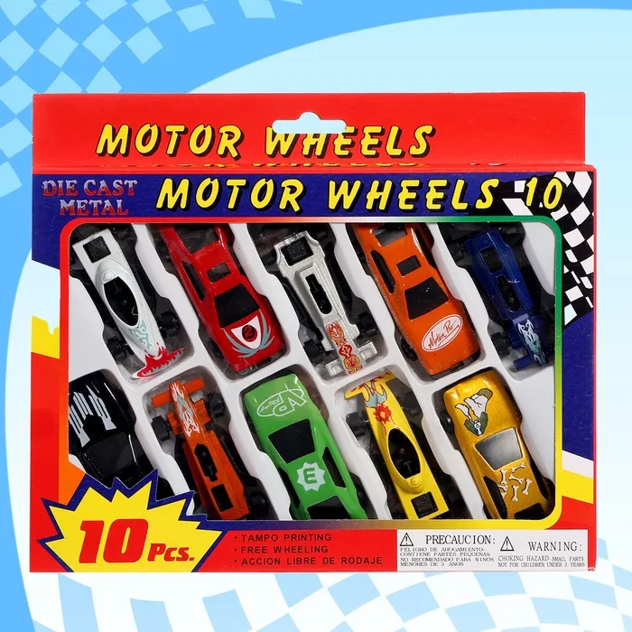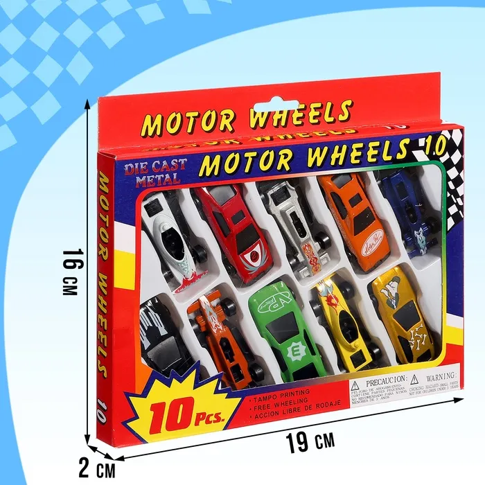 - 10 уникальных моделей: в наборе представлены разноцветные машинки, каждая из которых выглядит как маленький гоночный автомобиль. Стильный дизайн и яркие цвета делают их привлекательными для детей. Металлический корпус добавляет прочности и реалистичности.