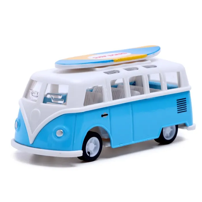 - Металлический корпус: основа микроавтобуса выполнена из металла с элементами пластика, что делает игрушку особенно прочной. Она выдерживает активные игры и не боится падений.