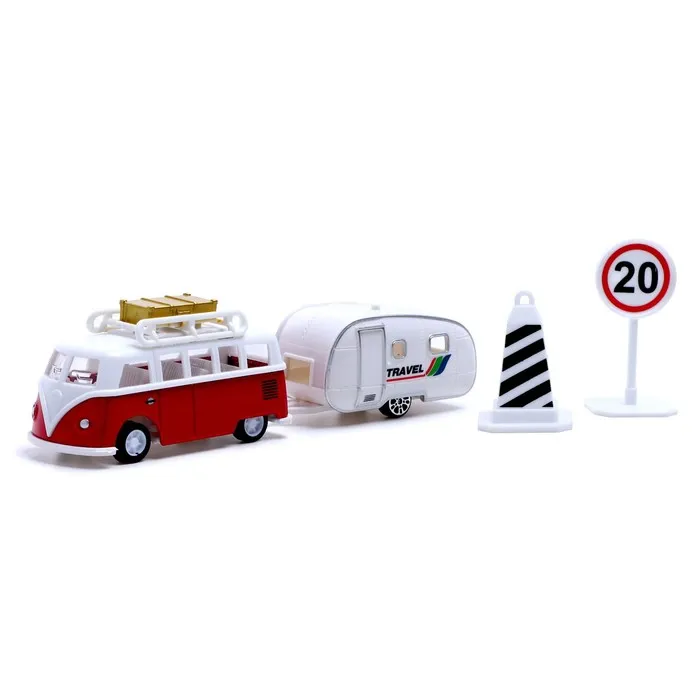 В путь с прицепом! Инерционный микроавтобус с прицепом – это стильная и прочная игрушка, которая станет настоящим спутником в детских путешествиях. Этот яркий набор создан для маленьких исследователей, которые мечтают перевозить грузы, устраивать автопробеги или разыгрывать свои собственные истории. Представьте, как ваш ребёнок запускает машинку вперёд, а за ней следует вместительный прицеп, готовый доставить «груз» в любую точку комнаты. А чтобы сделать игру ещё интереснее, в комплект входят знак «Стоп» и чёрно-белый конус для создания реалистичных дорожных сцен.