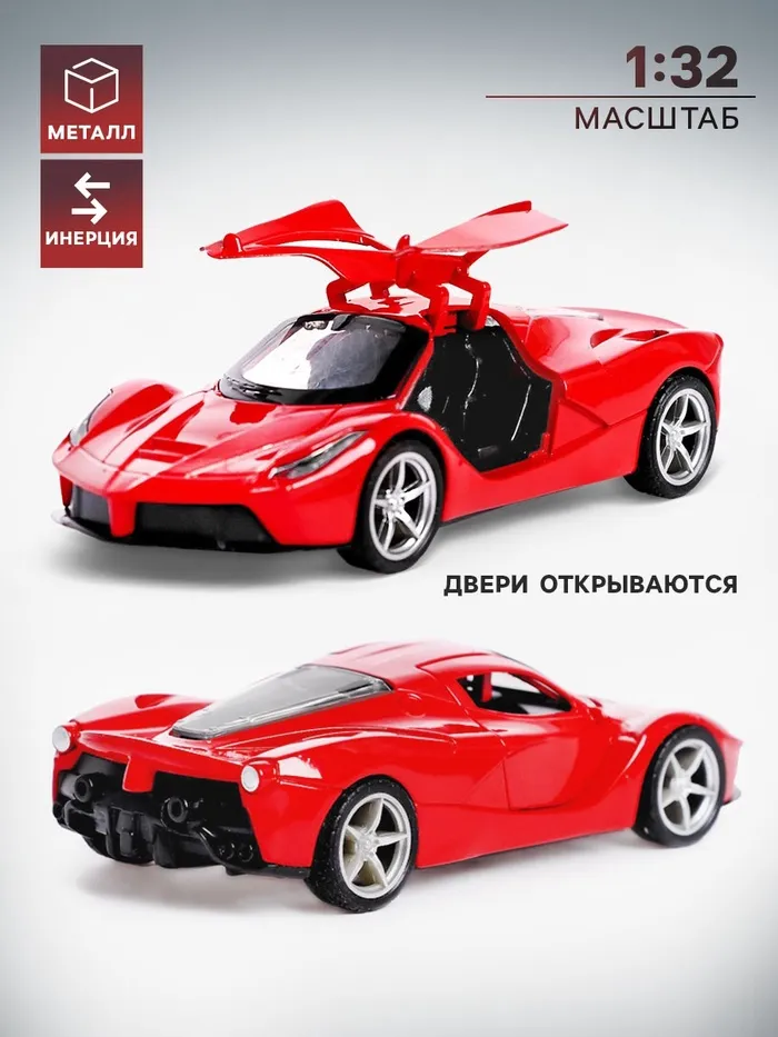 Машинка металлическая «ГиперКар», 1:32, инерция, открываются двери, цвет красный — Характеристики