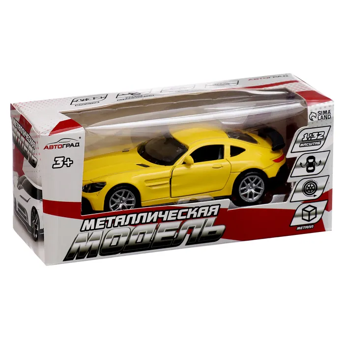 Машинка металлическая «ГиперКар», 1:32, инерция, открываются двери, цвет жёлтый — Характеристики