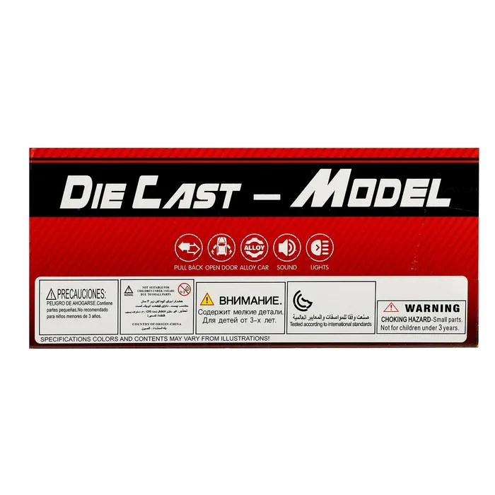 - Встроен инерционный механизм. Привести транспорт в движение не составит труда: необходимо лишь отвести машинку назад и отпустить. Игрушка быстро наберёт скорость и мгновенно достигнет намеченной цели.