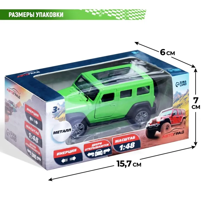 Машинка металлическая «Крузер», 1:48, инерция, открываются двери, цвет зелёный — Характеристики