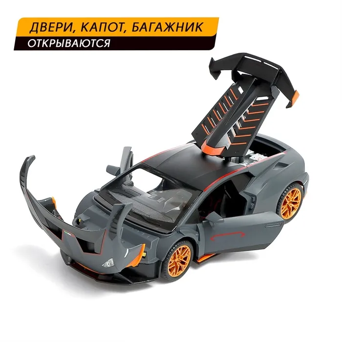 Машинка металлическая «Купе», 1:24, открываются двери, капот, багажник, инерция, цвет серый — Характеристики
