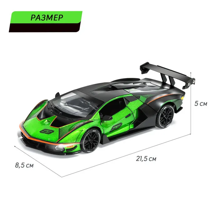 Машинка металлическая «Купе», инерционная, 1:24, световые и звуковые эффекты, открываются двери, капот, багажник, цвет зелёный — Характеристики