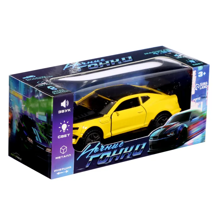 Машинка металлическая «Ночные гонки», инерционная, 1:32, открываются двери, звуковые и световые эффекты, цвет жёлтый — Характеристики