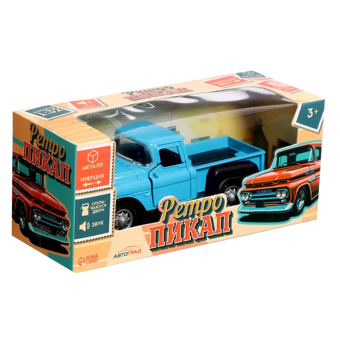 Машинка металлическая «Пикап», инерция, 1:32, открываются двери, световые и звуковые эффекты, цвет синий — Характеристики