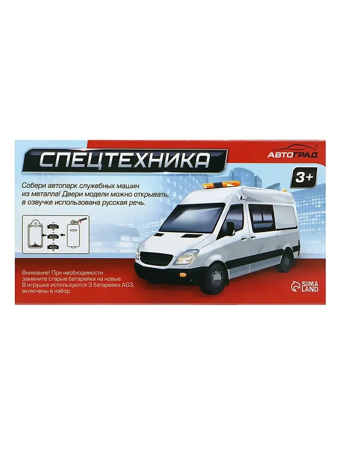 - Машина работает от 3 батареек типоразмера LR41 (есть в комплекте).