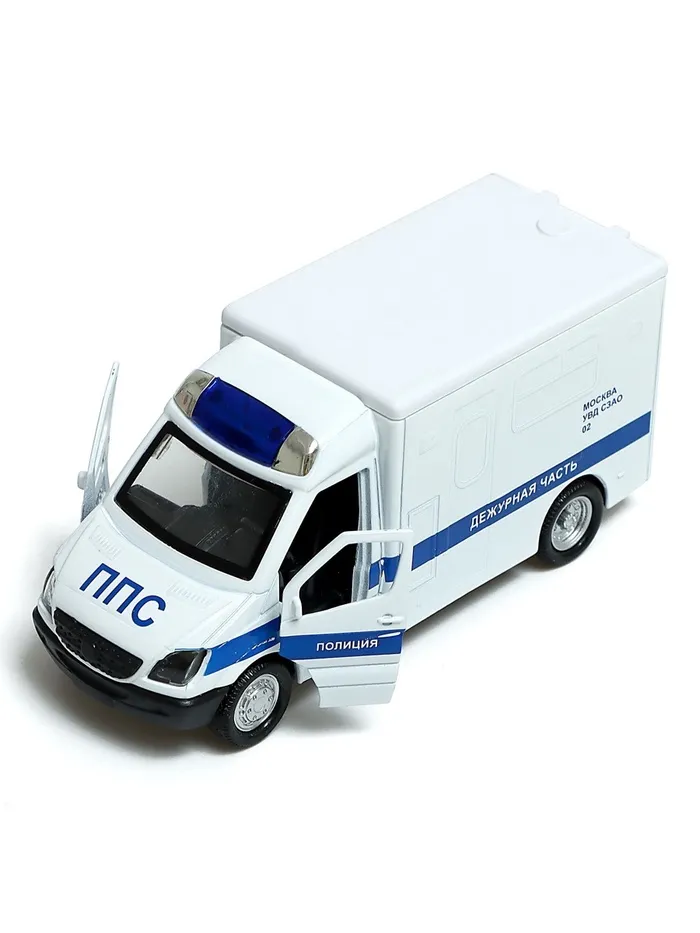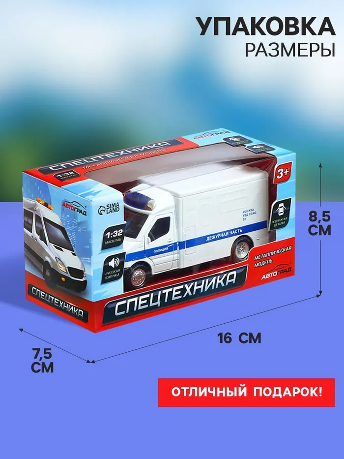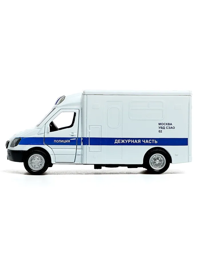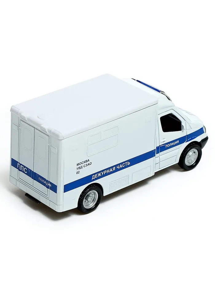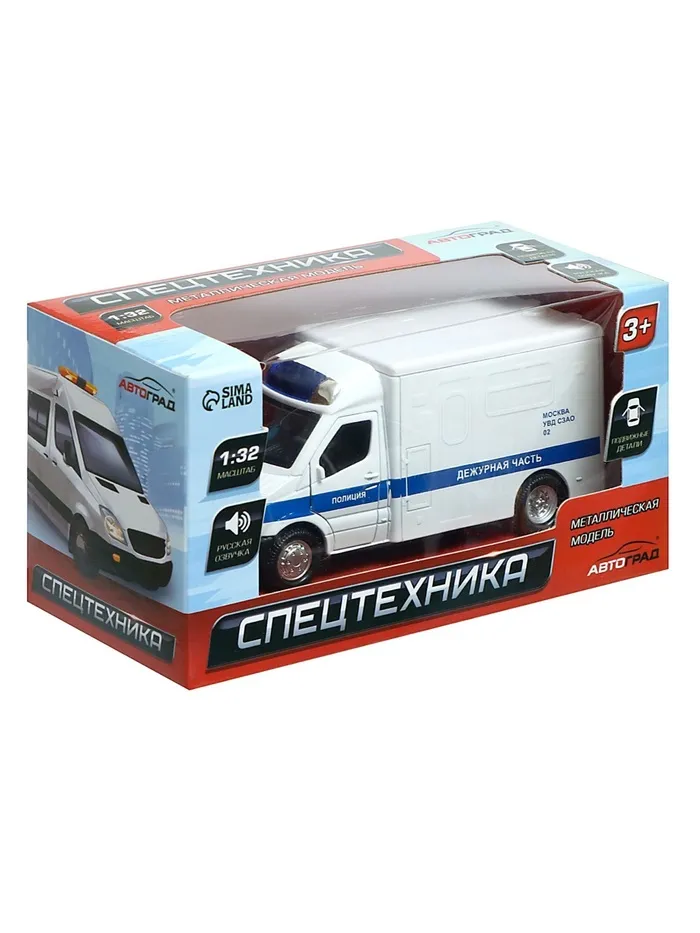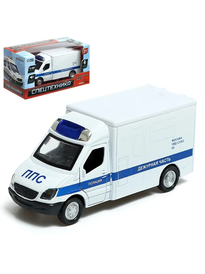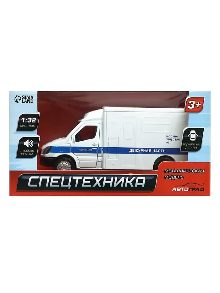 Машинка металлическая «Полиция», 1:32, инерционная, световые и звуковые эффекты, русская озвучка, открываются двери, цвет белый — Характеристики